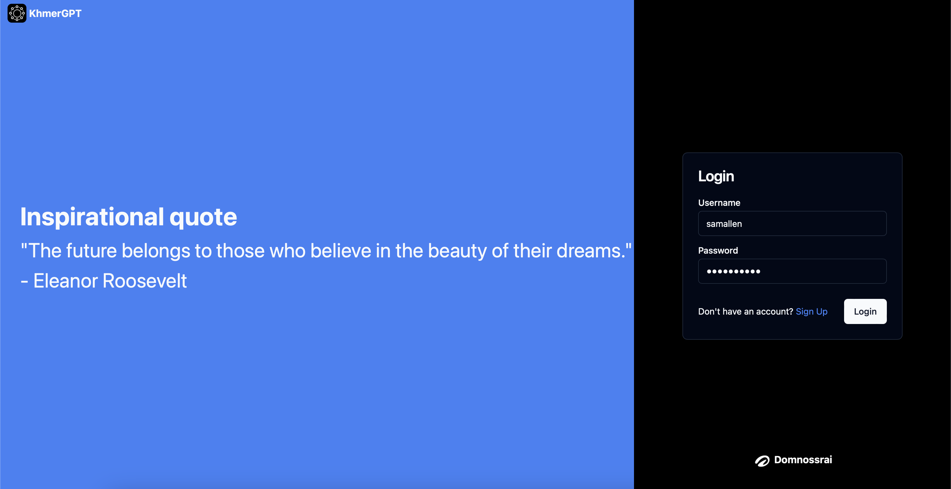 Getting StartLoginOn this pageLogin Login An Account Ready to start use our product ChatBot AI Step 1: Start the login process Go to https://chat.domnossrai.com/login (Desktop view) (Mobile view) (Desktop view) (Mobile view)
